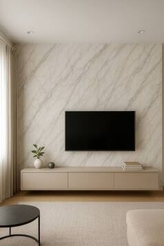 قاببندی یا ترکیب با چوب و آینه → جلوه خاصی میده. نکته مهم: • سبک و راحت نصبه، پس دیوار پشت TV سنگین نمیشه.