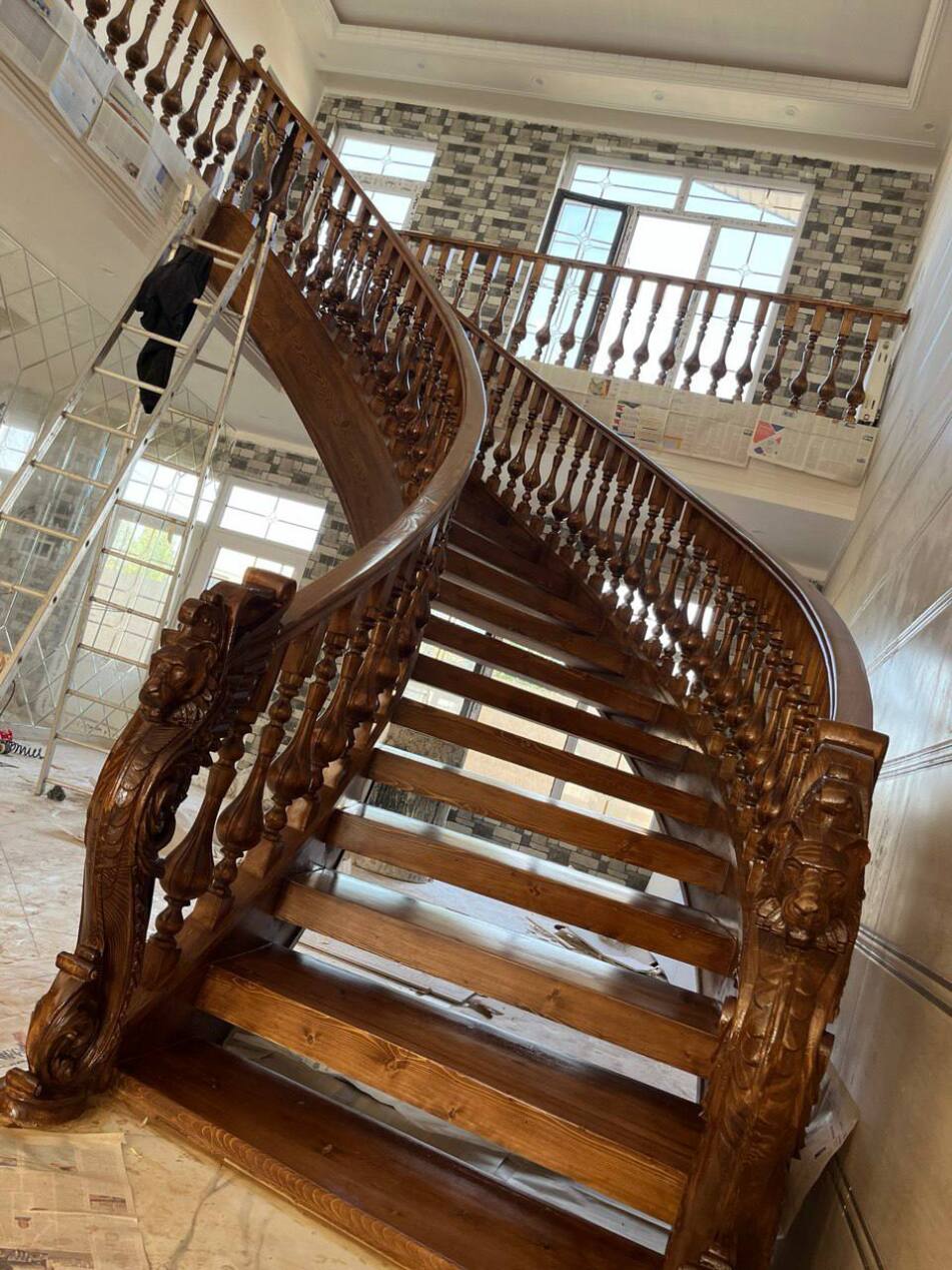این پروژه کلاسیک بوده و نرده ها از چوب راش میباشند به رنگ فندقی تیره طراحی شدند